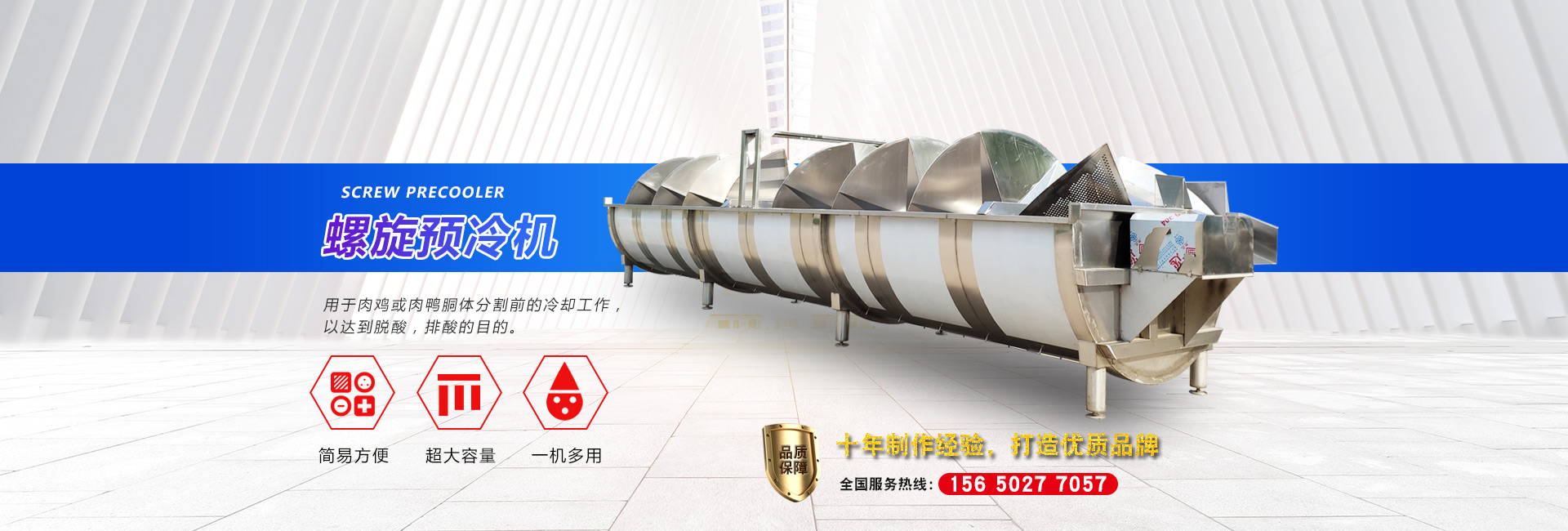 公司長期與國內(nèi)外屠宰加工企業(yè)合作,走引進——消化——創(chuàng)新和自主研發(fā)相結(jié)合的道路,在國內(nèi)外同類產(chǎn)品的基礎(chǔ)上,不斷更新和改造。公司主要設(shè)備有:A字型立式脫毛機、臥式脫毛機、強力噴淋機、松毛機、浸燙池、螺旋預(yù)冷機、禽籠清洗機、電暈機、兔扯皮機、兔割前爪/后爪機、剝胗機、自動洗鉤機、螺旋燙爪機、雞爪脫皮機、分割輸送帶等屠宰用設(shè)備。其中,公司獨力發(fā)明生產(chǎn)設(shè)計的“電動調(diào)節(jié)脫毛機”及“自動控水控溫浸燙池”順利通過知識產(chǎn)權(quán)局的實質(zhì)性審查。公司所生產(chǎn)的設(shè)備 可與國外同類產(chǎn)品配套使用,設(shè)備遠銷阿爾及利亞、澳大利亞等中東、非州等并建立了長期穩(wěn)定的合作關(guān)系。
