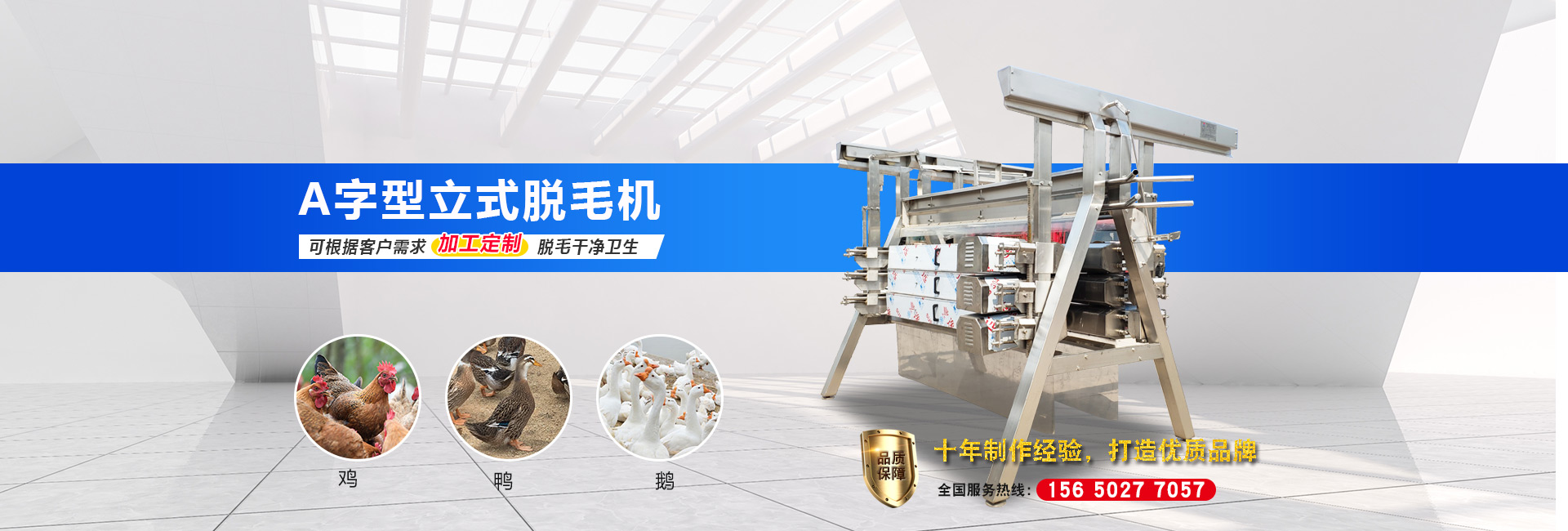 公司主要設(shè)備有:A字型立式脫毛機、臥式脫毛機、強力噴淋機、松毛機、浸燙池、螺旋預(yù)冷機、禽籠清洗機、電暈機、兔割前爪/后爪機、剝胗機、自動洗鉤機、螺旋燙爪機、雞爪脫皮機、分割輸送帶等屠宰用設(shè)備。